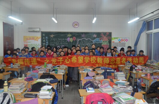 2个小时的时间转瞬即逝,志愿者教师们讲得意犹未尽,同学们的参与热情丝毫不减。最后,志愿者们与学生们进行了合影留念。本次主题教学活动在志愿者们和龙子心希望学校孩子们的依依不舍中画上了圆满的句号。