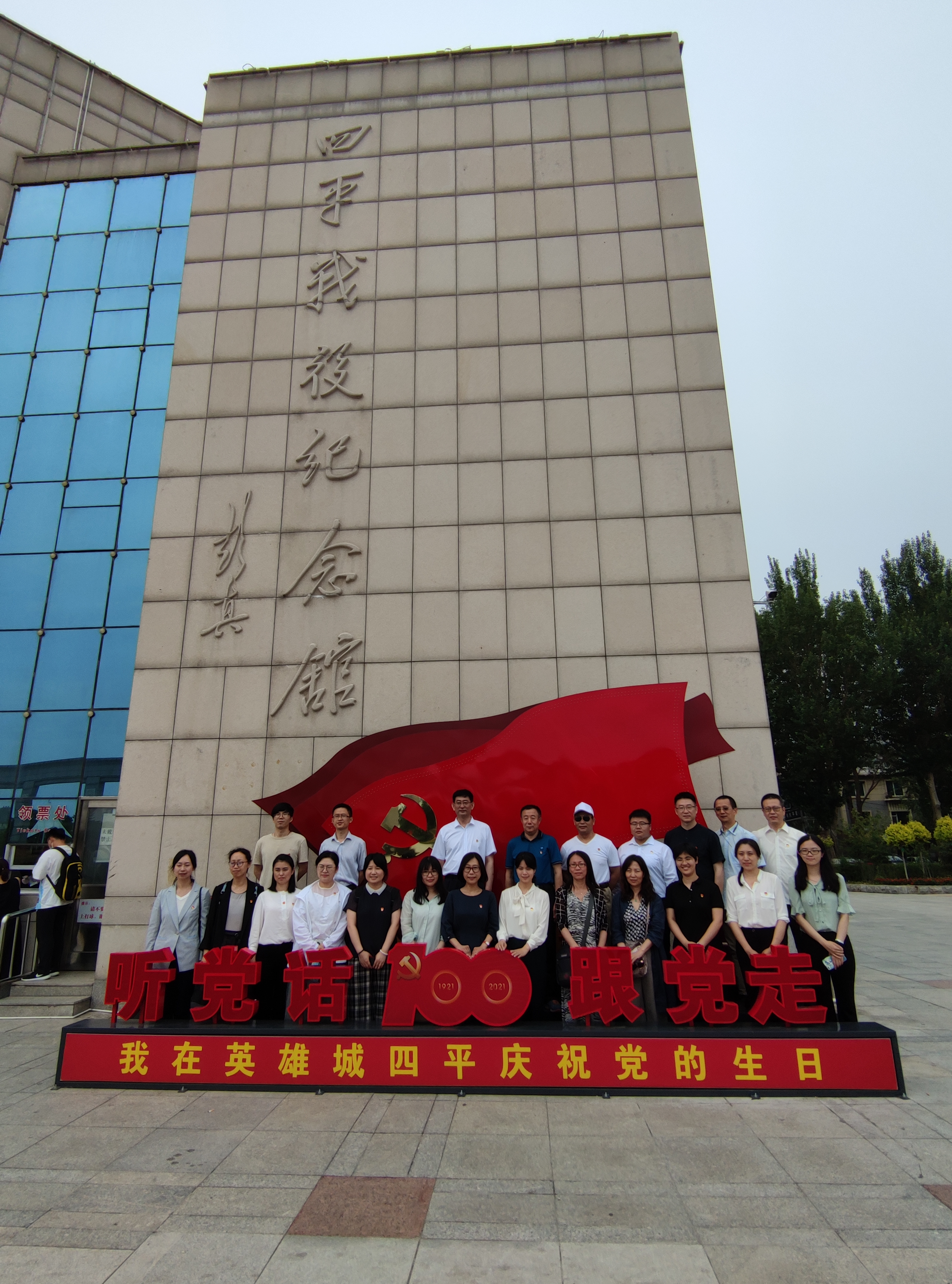 下午,全体人员先到全国重点烈士纪念建筑物保护单位四平烈士陵园开展学习活动。陵园里安葬着为四平解放和建设而牺牲的数万名烈士,其中有记载的为10083名。讲解老师带领大家参观了马仁兴将军和李光正等多名中国人民解放军第四野战军最高战功奖“东北民主联军毛泽东奖章”获得者的雕像、四战四平纪念碑、烈士英名墙以及大型合葬墓。在纪念碑前,党委书记刘昌松同志领誓,带领大家重温入党誓词。