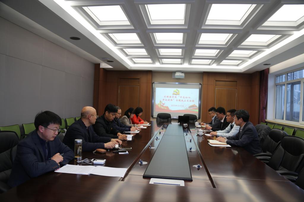 于2019年12月9日下午在三楼会议室召开了“不忘初心、牢记使命”主题教育专题民主生活会,学院领导班子全体参加了民主生活会并发言,会议由党委书记刘昌松同志主持。学校纪委副书记、纪委办公室主任王飞同志代表学校第十一指导组全程出席本次民主生活会。