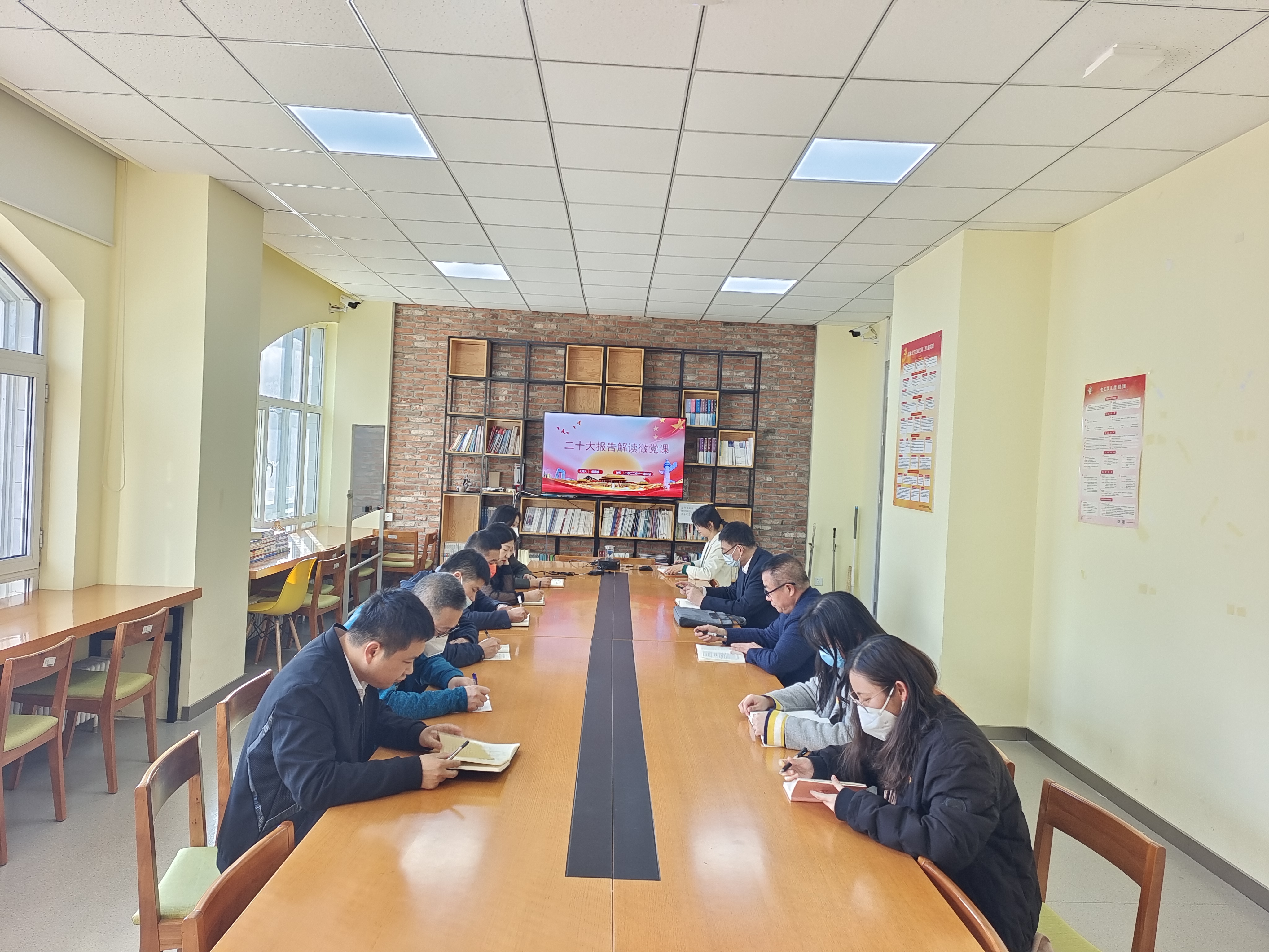行政机关教工党支部在外语楼党员活动室101室开展深入学习贯彻党的二十大报告精神主题教育活动,由行政机关教工党支部书记伍秀枫讲授党的二十大报告微党课。支部10名党员参加会议,会议由支部书记伍秀枫主持。