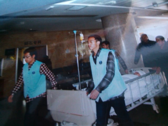 学生曾宪武、王欣璐、郭瑞睿等多名同学走进医院,进行“送爱心进医院”的志愿活动,献出了自己的一份爱心。