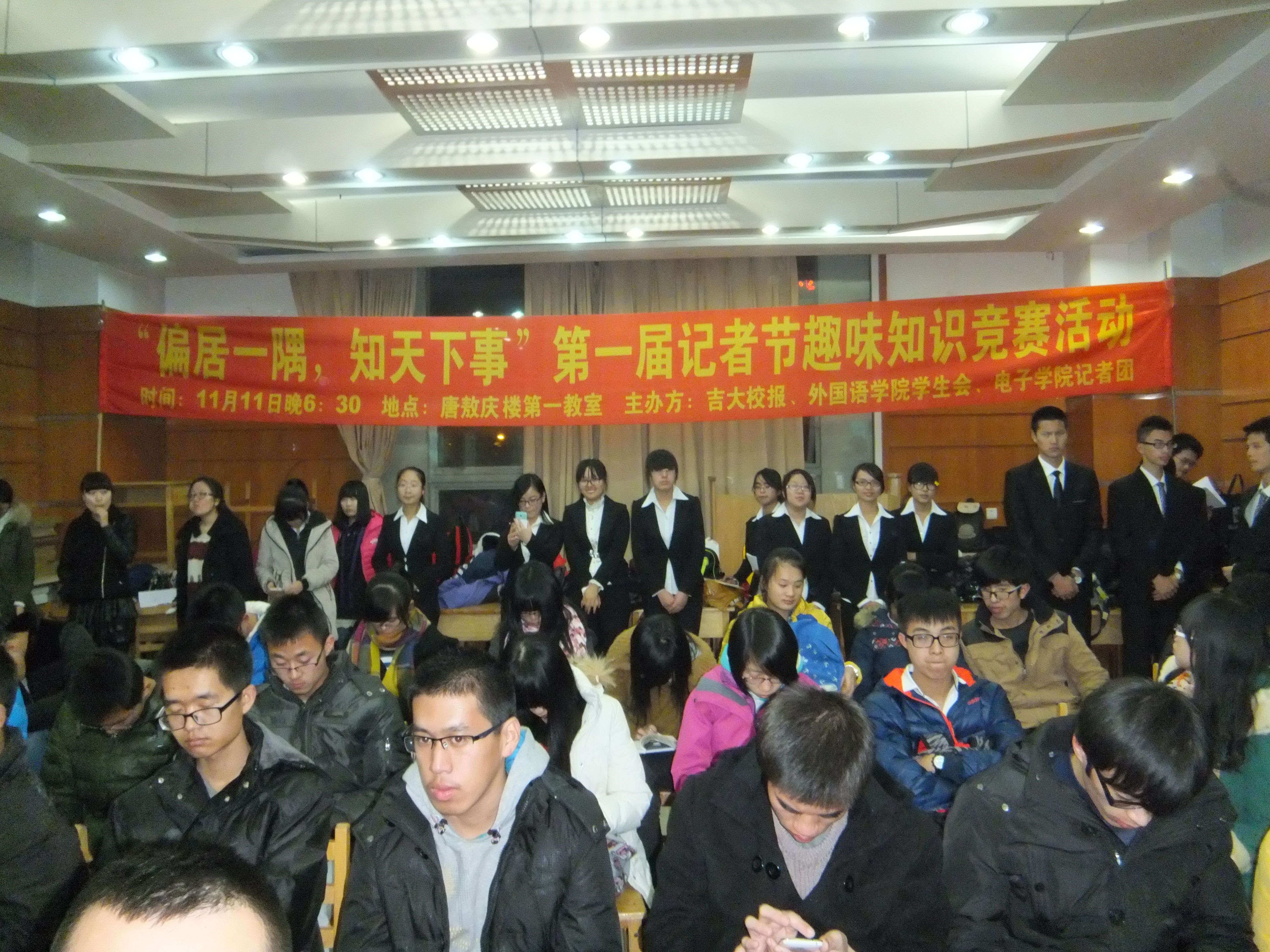 报》大学生通讯社在唐敖庆楼联合举办了以“偏居一隅,知天下事”为主题的首届记者节趣味知识竞赛活动,共有自两个学院的25名学生参赛。