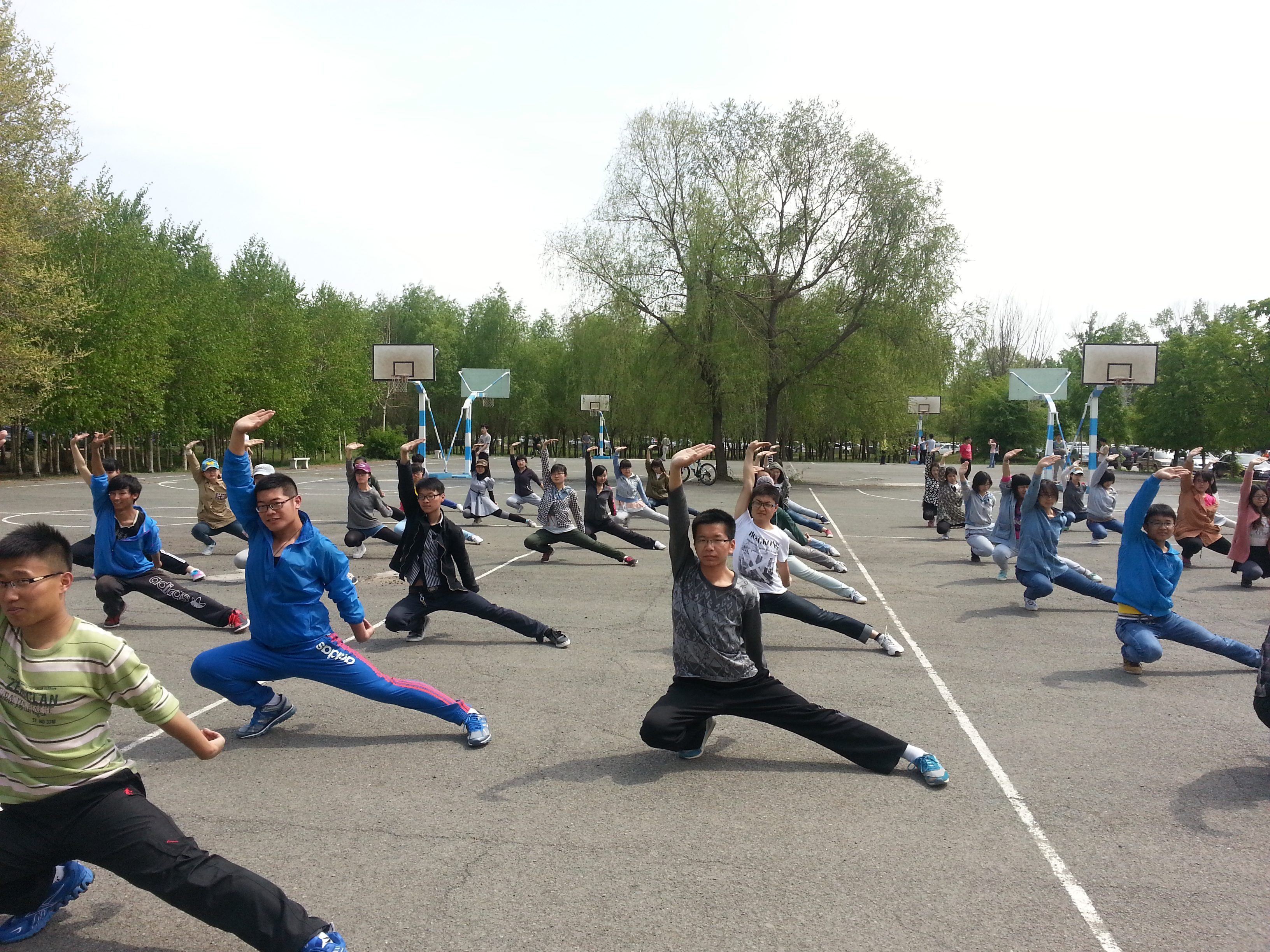 高度重视,并迅速召开三路长拳训练协调会,就训练对象、训练时间、教练团队等内容作了部署。四月中旬开始,60余名大一同学参加了训练。每天中午12点20,同学们匆匆吃完午饭就赶到萃文广场集合,开始白天的训练,一直持续到下午1点10分;晚上8点40,下了晚课的同学们又抓紧时间到麦克德尔米德实验室后的空地上集合,直到晚上10点钟才训练结束,拖着疲惫的身躯返回寝室。中午的骄阳炙烤着同学们的脸庞,也见证着他们的成长;夜晚的路灯拉长着他们的身影,也见证着他们的坚忍。在马步、弓步的扎实排列中,他们一步步地完善着每个动作;在喊声震天的口号声中,他们一点点地蜕变、成熟。值得一提的是,占训练队伍中大多数的女生,自始至终没有喊累,没有退缩,用“女汉子”的精神完美展现欧美色情片
