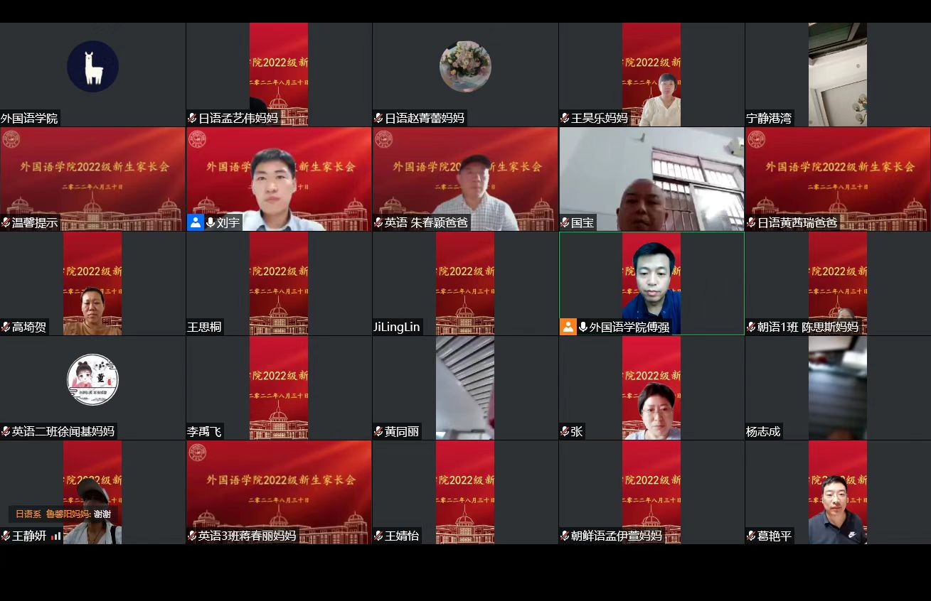 为进一步夯实家校协同育人机制,增进新生家长对学生在校学习生活的了解,8月30日晚,学院通过线上方式召开2022级新生家长会。学院党委副书记、副院长傅强出席,家长会由2022级辅导员刘宇老师主持,200余名新生家长线上参加会议。