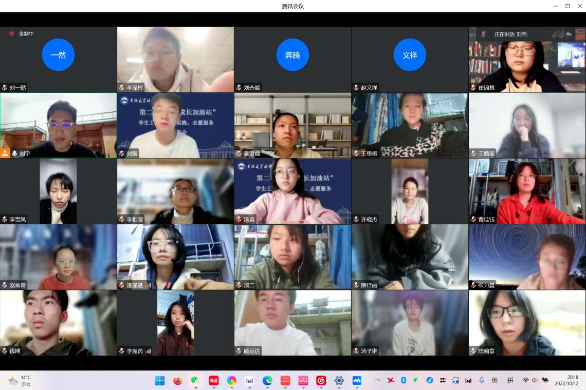 2020级英文系刘骥同学主持,哲学社会学院2019级刘奔腾同学主讲。学院新生辅导员刘宇老师、2022级新生参加。