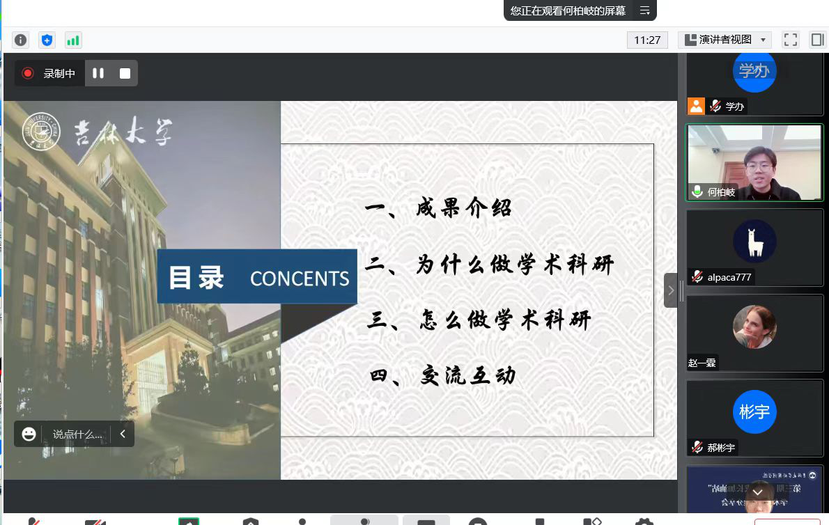 通过线上方式举办了第三期“新生成长加油站”学术科研经验分享会活动,邀请马克思主义学院2019级本科生何柏岐担任主讲,欧美色情片