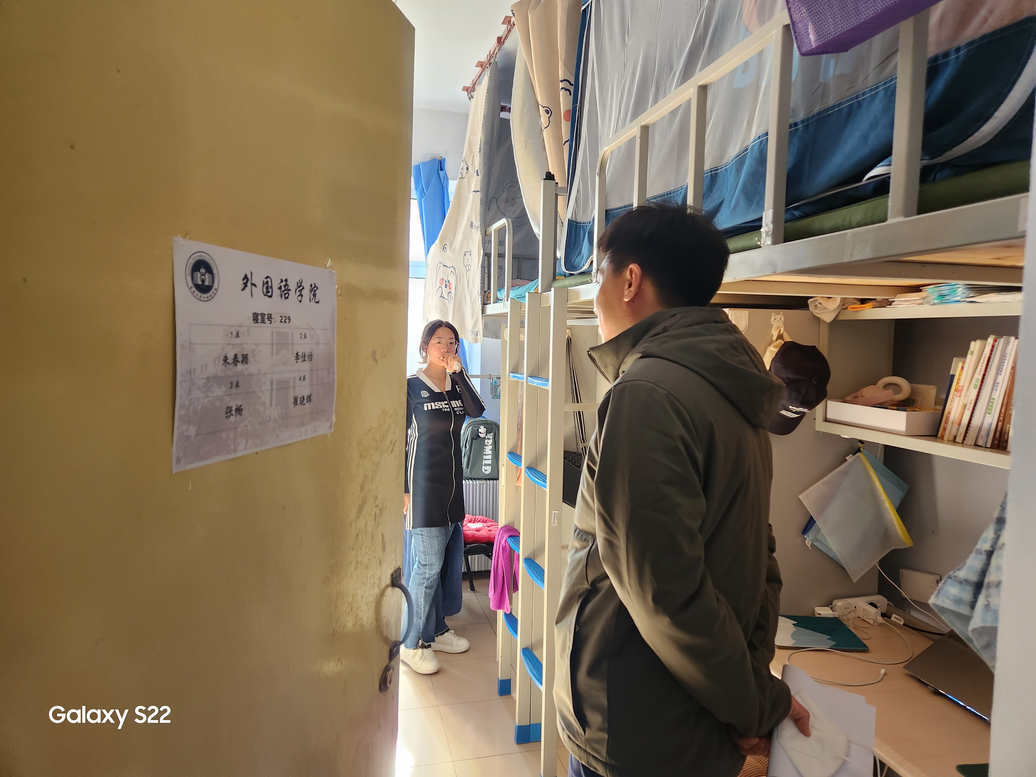 辅导员王一涵、楚恒叶、刘宇深入学生公寓,开展新学期学生宿舍走访工作。