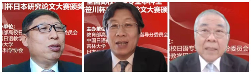 颁奖仪式上,教育部高校日语专业教学指导分委员会主任、中国日语教学研究会名誉会长、天津外国语大学修刚教授,中国日语教学研究会会长、教育部高校日语专业教学指导分委员会委员、北京外国语大学周异夫教授,日本科学协会会长、东京大学名誉教授高桥正征先生分别致辞。