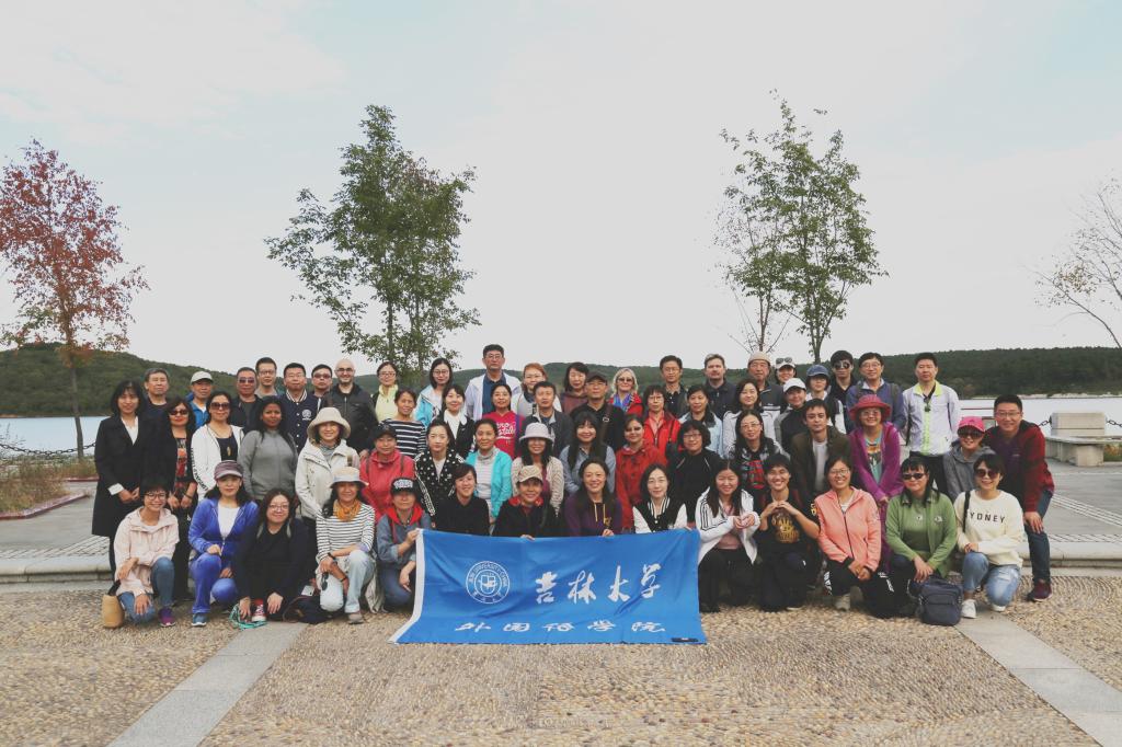 本次活动徒步起点为净月潭公园西门,随着院旗的指引,学院教职工沐浴在清爽的微风中,一路欢声笑语,或聊工作、或话家常、或驻足留影。大自然清新的空气与怡人的潭间山色让人心胸开阔,流连忘返。