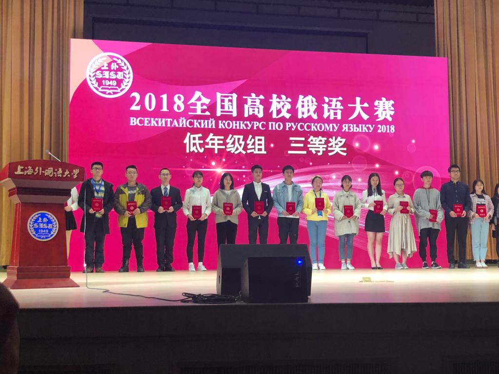 选手凭借雄厚的实力和敏捷的思维,取得了优异成绩。2017级种悦瑶、李想同学获得低年级组三等奖,2015级张蕴朦同学获得高年级组二等奖(在全国147名选手中位列第三)。上述三名参赛选手将由国家留学基金委管理委员会秘书处全额资助赴俄罗斯进修或攻读学位。