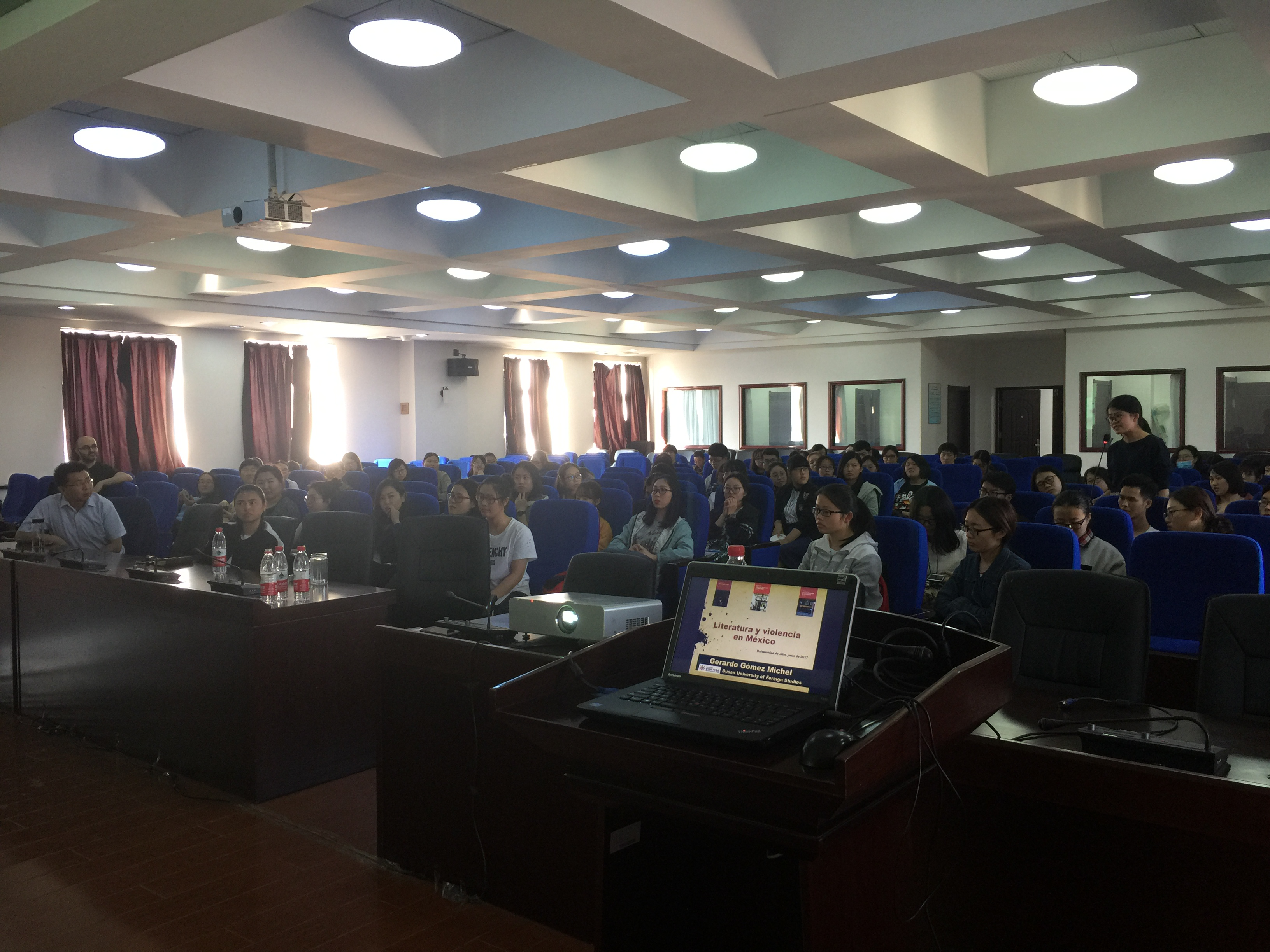 西班牙语系师生座谈,并为西语系师生开设了题为“墨西哥之文学与暴力”(Literatura y violencia en México)的讲座。