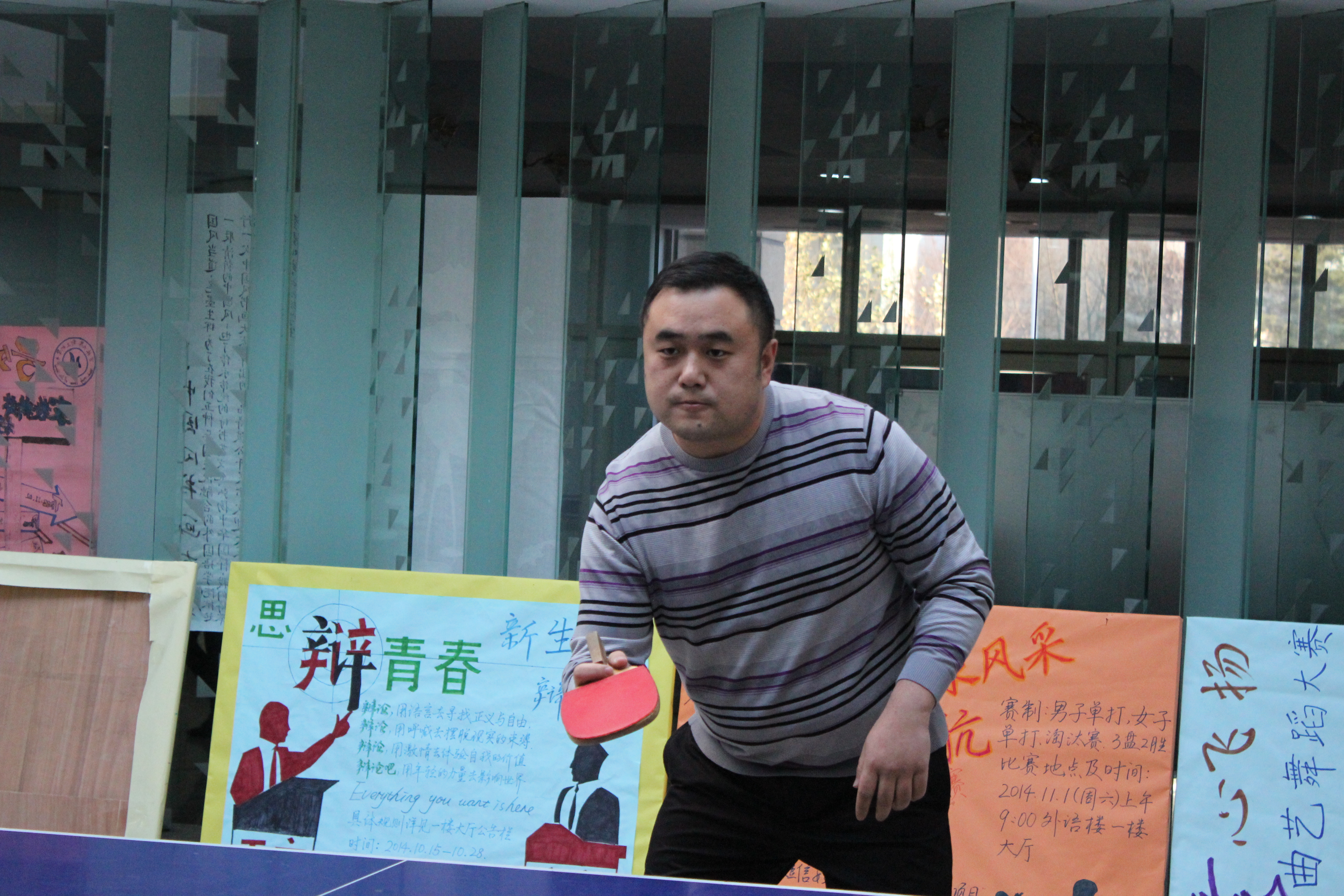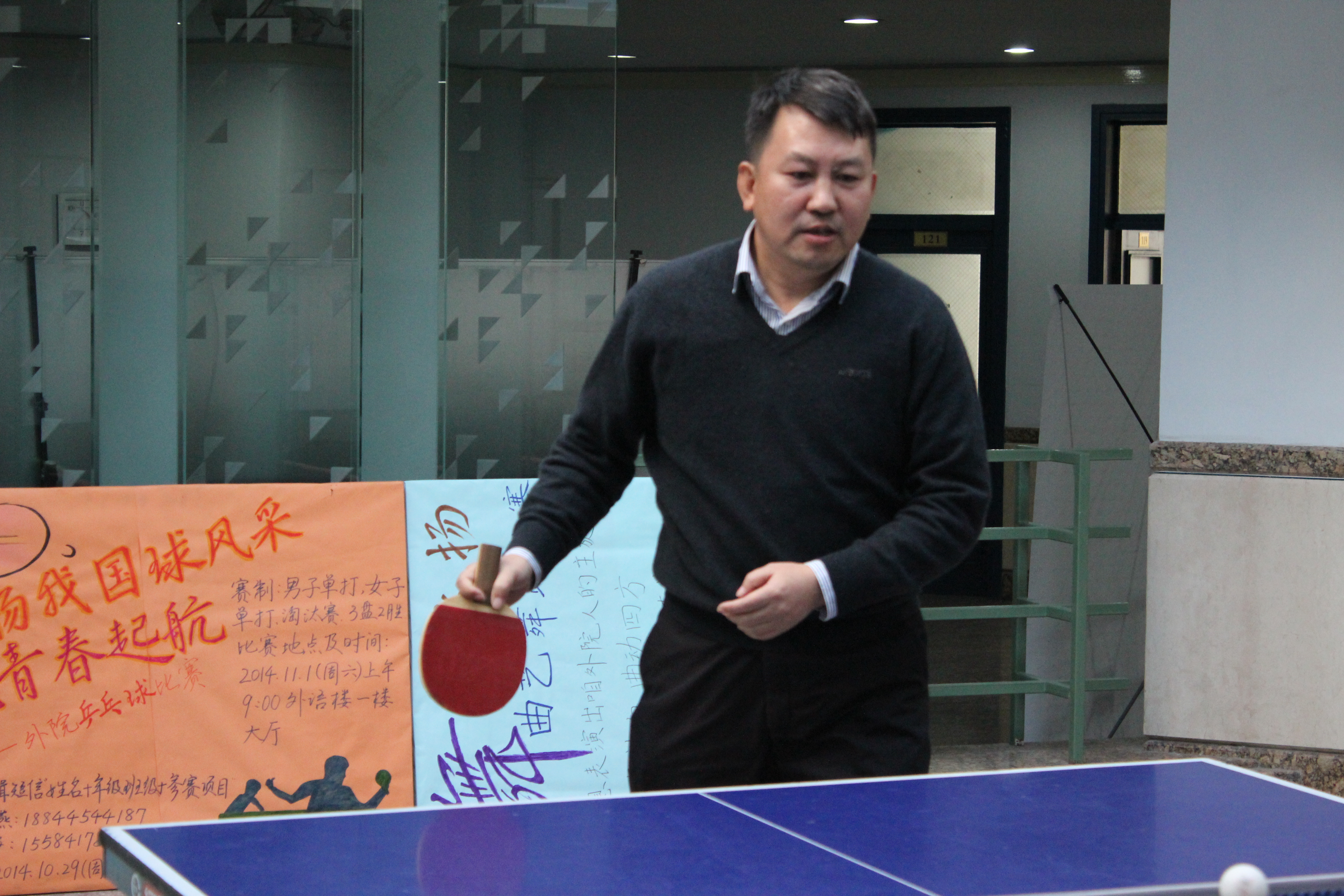 于11月7日下午在外语楼一楼大厅举办了第十五届“教师杯”乒乓球比赛。比赛项目包括男子单打,女子单打,男子双打,女子双打及混合双打五项,比赛规则采用国际标准(比赛为5局3胜制),实行淘汰制。