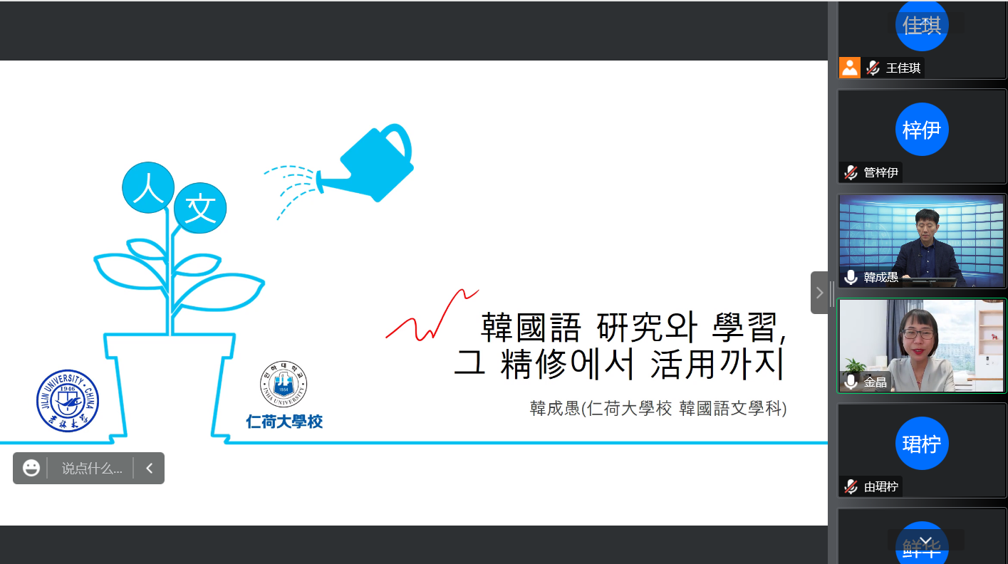 邀请,2022年11月4日15:30点仁荷大学韩国语文学科韩成愚教授在线上进行了云讲座。