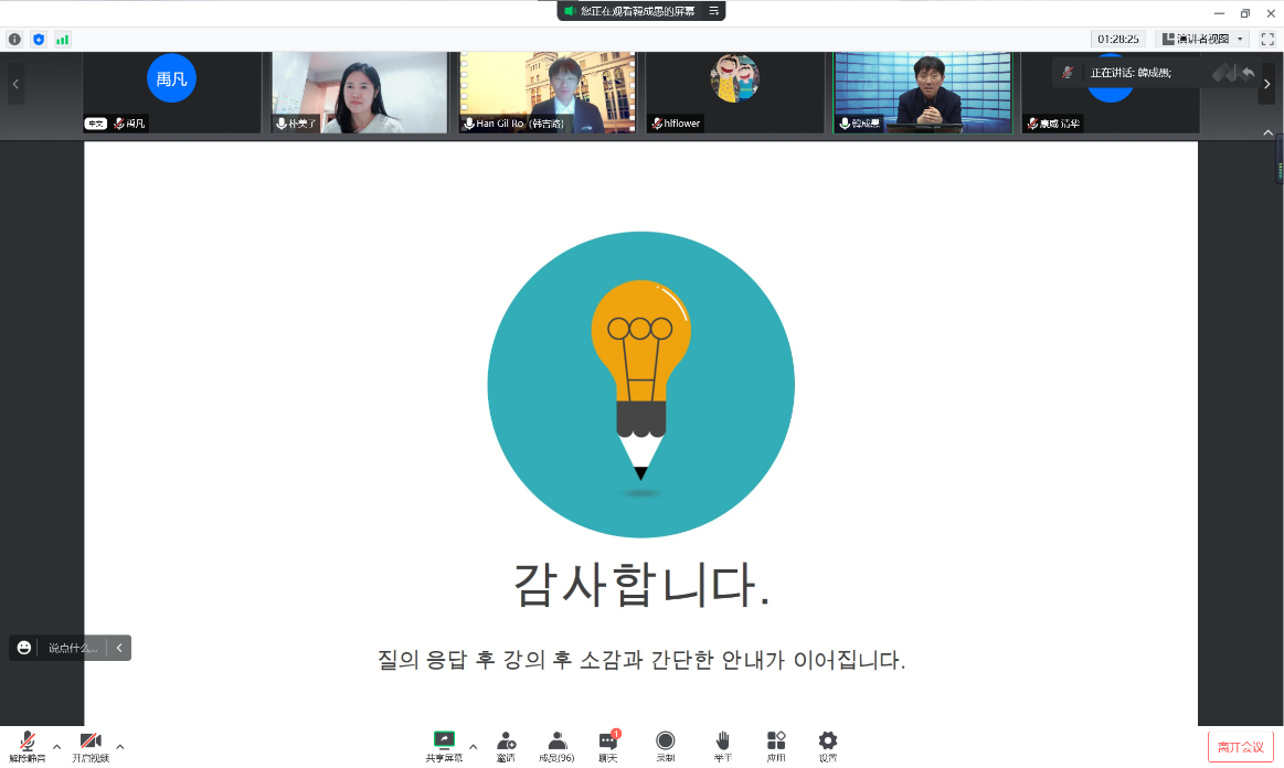 讲座结束后,学生们通过对话交流方式向韩成愚教授提出问题,韩教授对这些问题进行了耐心细致的解答。此次讲座共持续90分钟,并且是韩成愚教授在欧美色情片