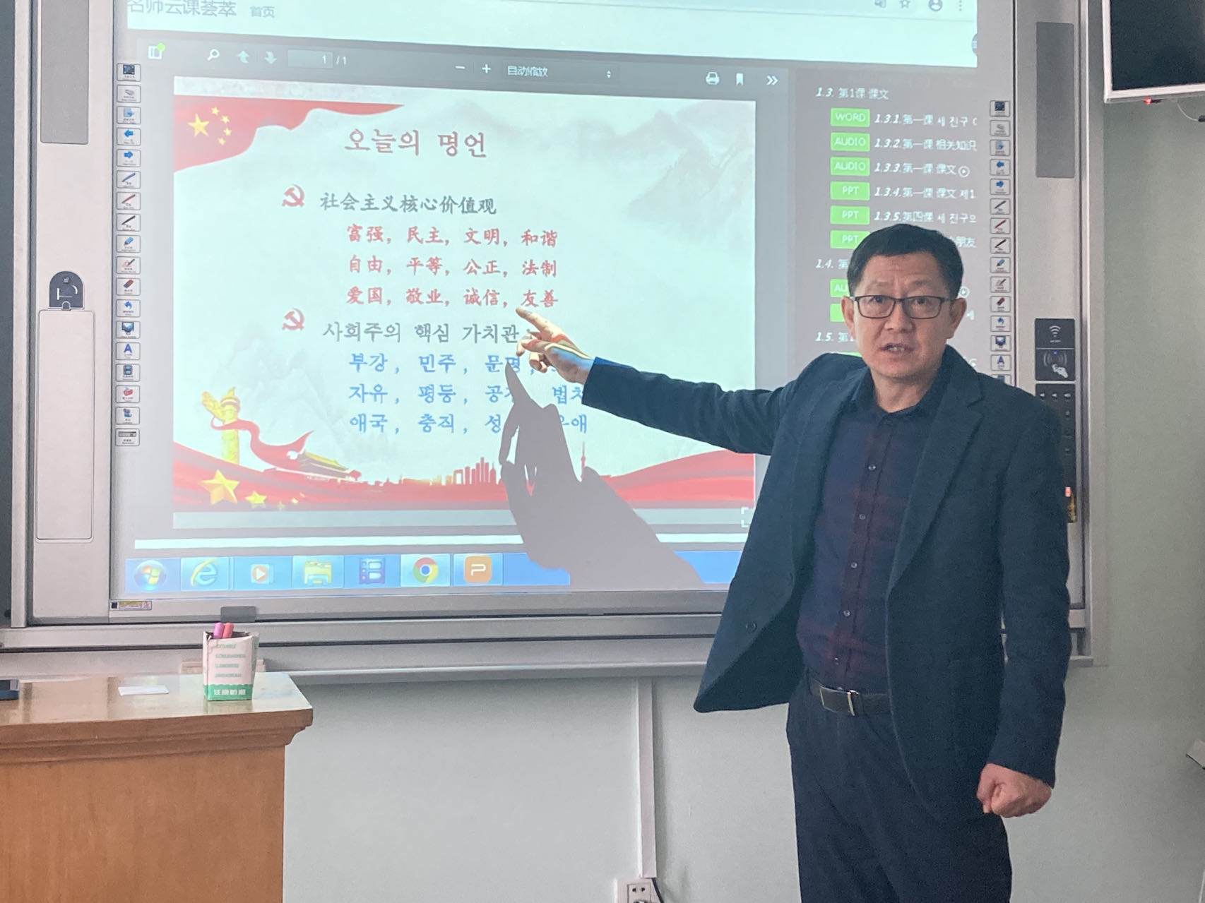 师生介绍了广东外语外贸大学主持研发的“名师云课荟萃”平台,介绍了韩国语语法、视听说、阅读等课程的建设概况以及使用方法。