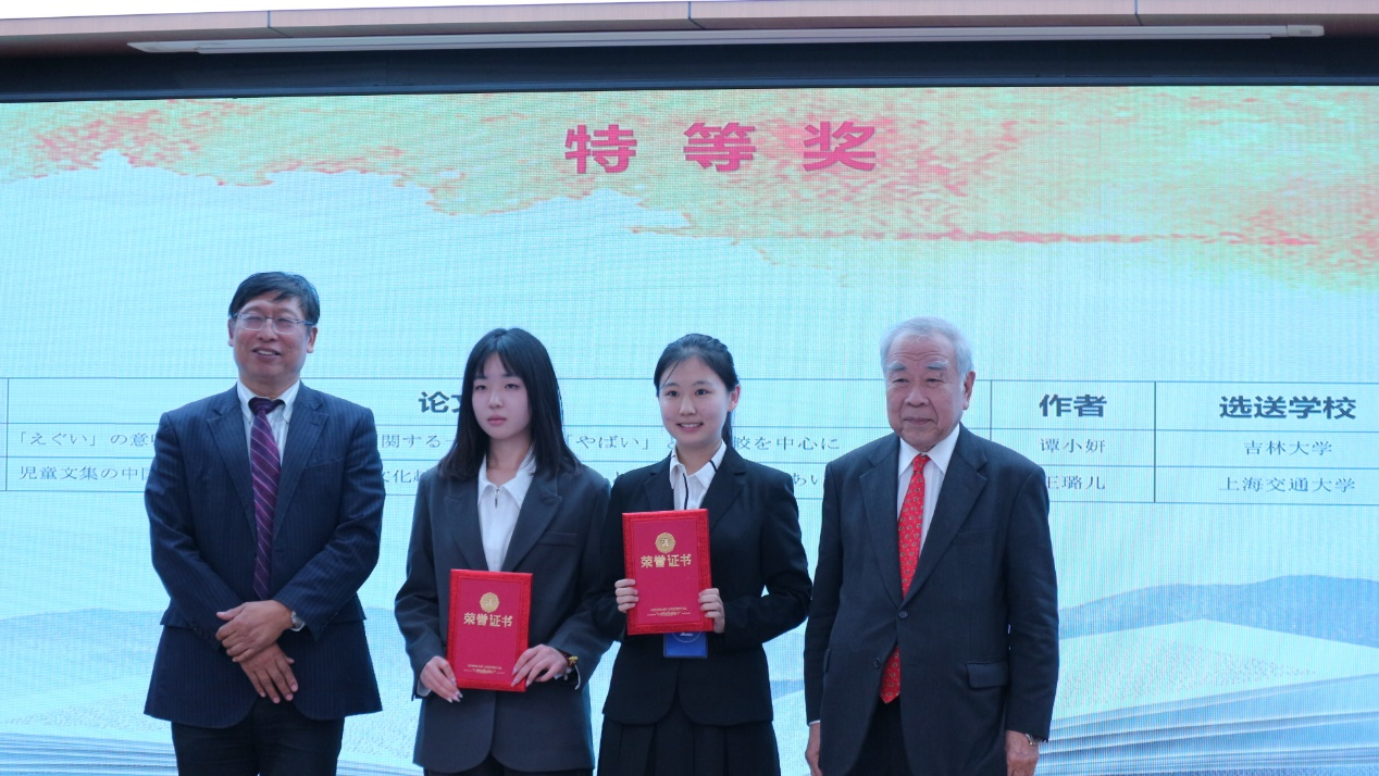 日文系学子凭借创新的研究视点和出色的现场发挥,在各校众多选手中脱颖而出共夺得四个奖项。2021级谭小妍同学独占鳌头摘得语言学组特等奖;2021级龚世颖、孙钰鑫两位同学荣获文化组二等奖;2021级丁伶俐、邓欣怡、邢惠淋三位同学获得文化组三等奖;2020级袁鹰扬同学获得语言学组三等奖。他们取得以上优异成绩展现了日文系对学生运用日语解决具体问题的能力、创新能力与独立研究能力的培养成果。未来日文系将继续重视学生综合实践能力的培养,为国家培育更多优秀的复合型日语人才。